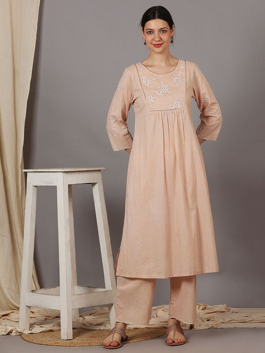 BEIGE EMBROIDERED KURTI WITH STRAIGHT PANTS