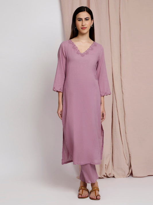 PURPLE SCALLOP EMBROIDERED KURTA WITH PANTS