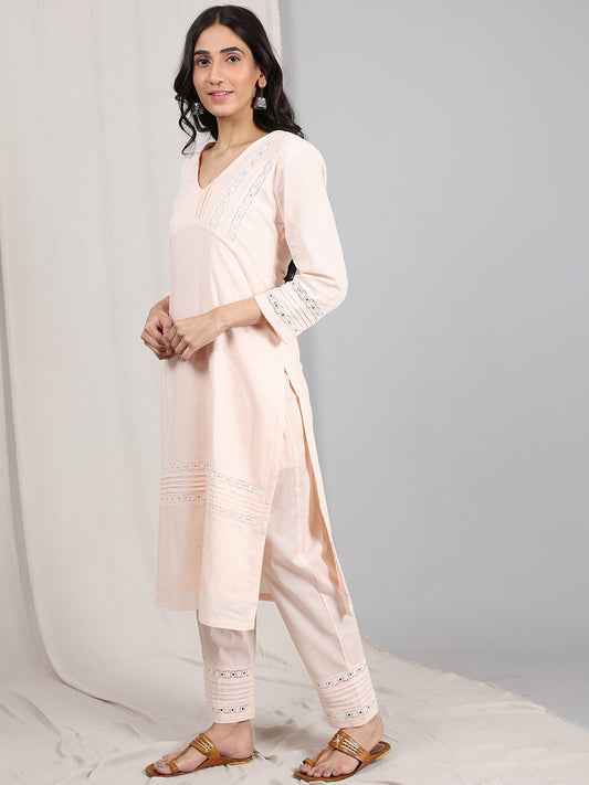 DUSTY PINK V-NECK EMBELLISHED KURTA WITH PANTS