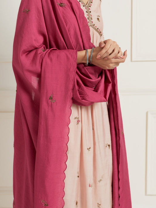 BURGUNDY PINKINSH EMBROIDERED CHANDERI DUPATTA