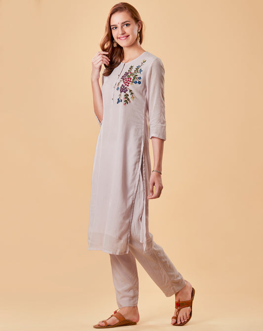 LIGHT MAUVE EMBROIDERED COTTON SILK KURTA WITH PANTS