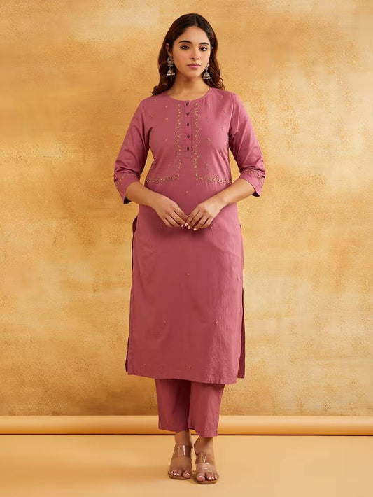 Blush Pink Hand Embroidered Kurta Pants- Set of 2