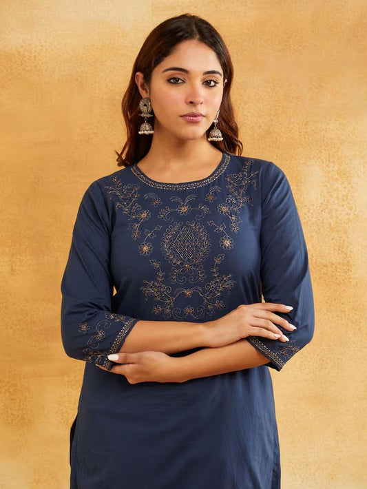 Blue Zari Embroidered Kurta
