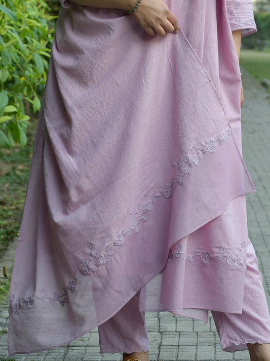 Purple Tonal Applique Embroidered Kurta With Scalloped Pants(No Dupatta)