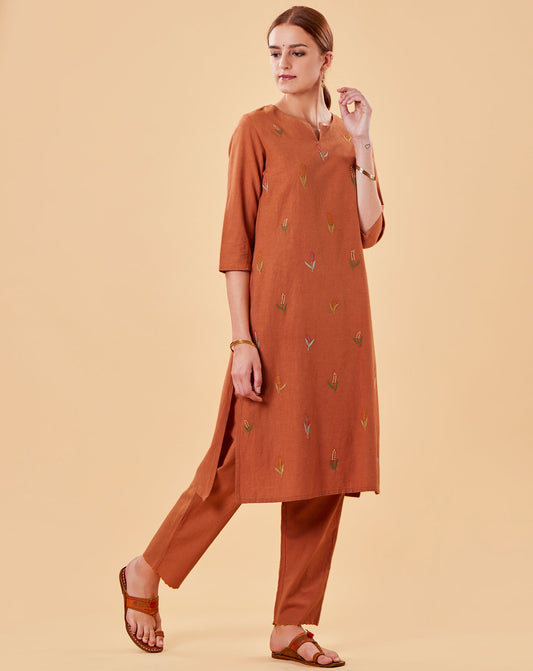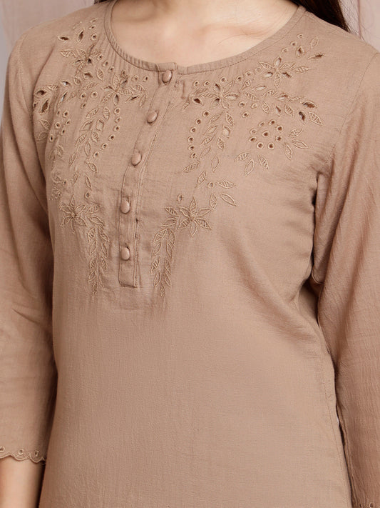 BROWN CUTWORK EMBROIDERED COTTON KURTA