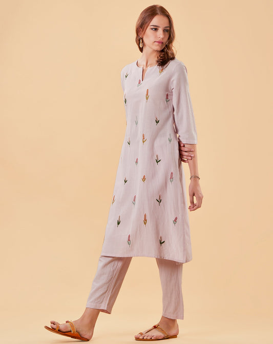 LIGHT PINK EMBROIDERED COTTON LINEN KURTA