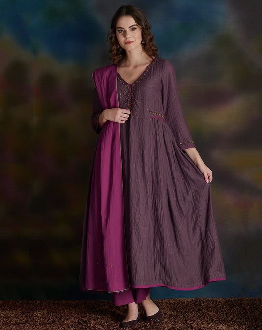 MAUVE EMBELLISHED COTTON SILK ANARKALI KURTA