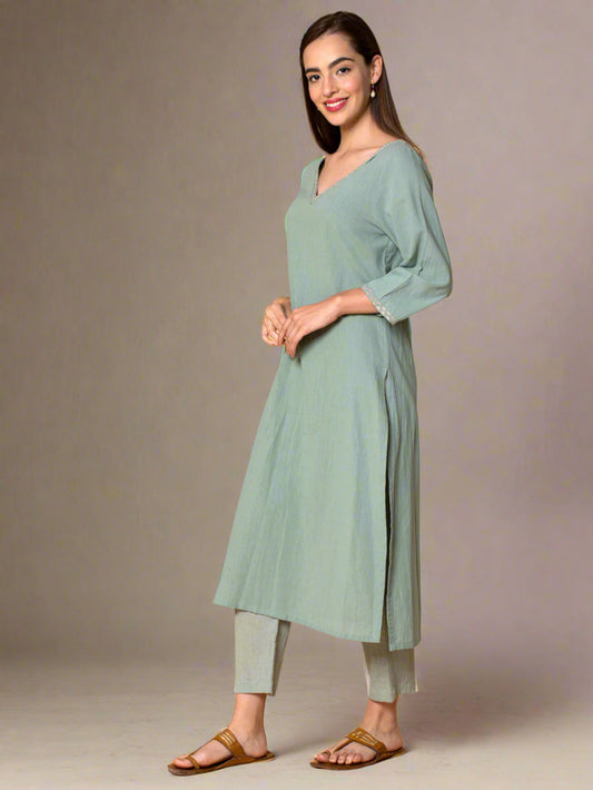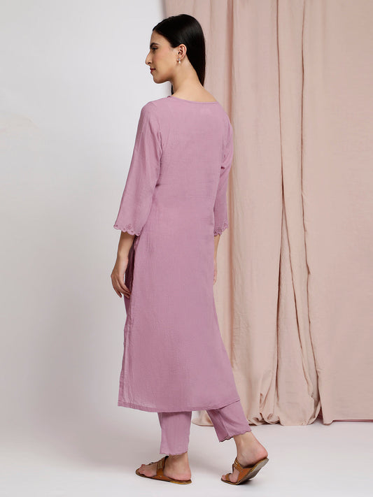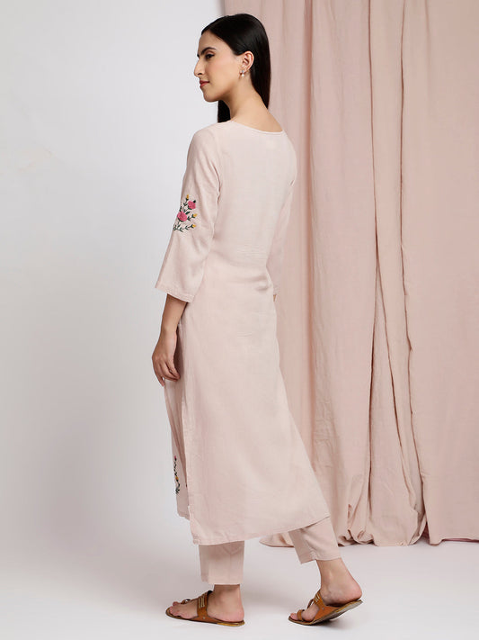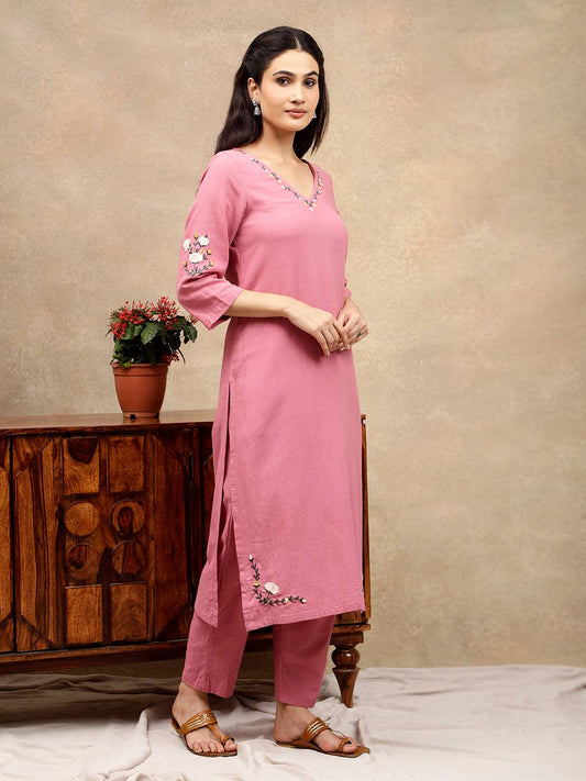 DUSTY PINK V-NECK EMBELLISHED KURTA WITH PANTS