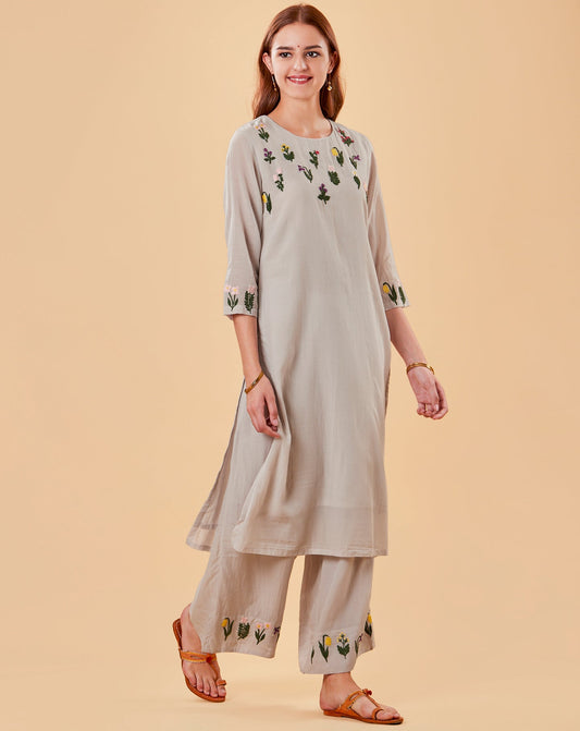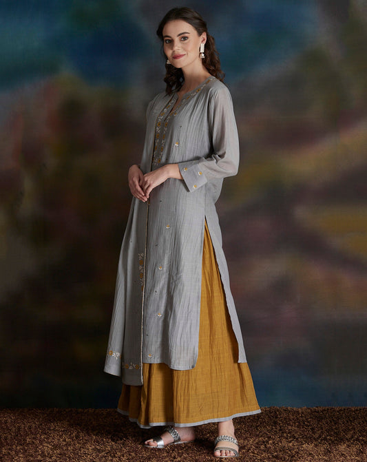 GREY EMBROIDERED COTTON SILK KURTA