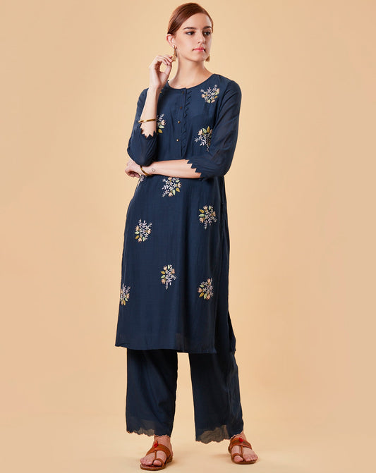 NAVY BLUE EMBROIDERED COTTON SILK KURTA