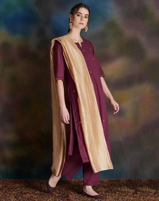 BURGUNDY EMBELLISHED COTTON SILK KURTA