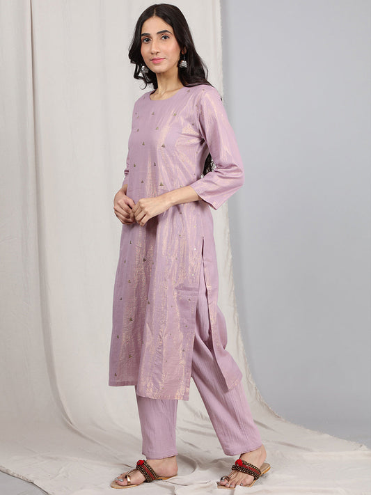 LIGHT PURPLE COTTON LUREX EMBELLISHED KURTA