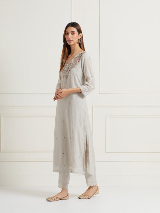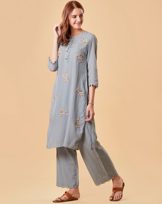 GREY EMBROIDERED & EMBELLISHED KURTI