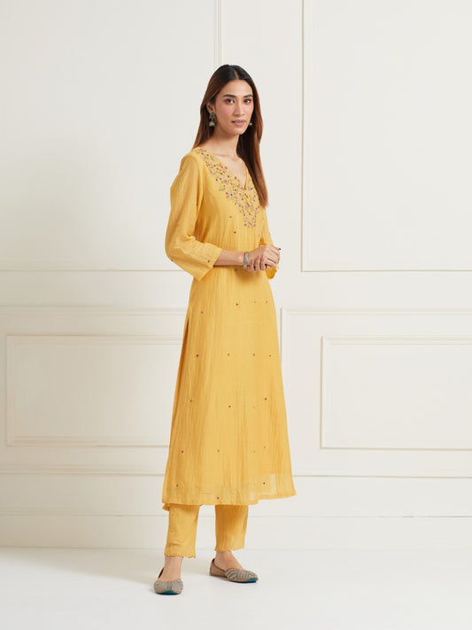 MUSTARD YELLOW EMBROIDERED & EMBELLISHED KURTI