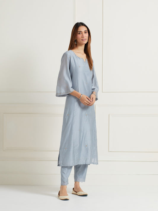 POWDER BLUE EMBROIDERED COTTON SILK KURTA