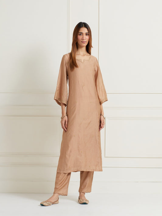 GOLDEN BROWN EMBROIDERED WITH HANDWORK CHANDERI KURTI