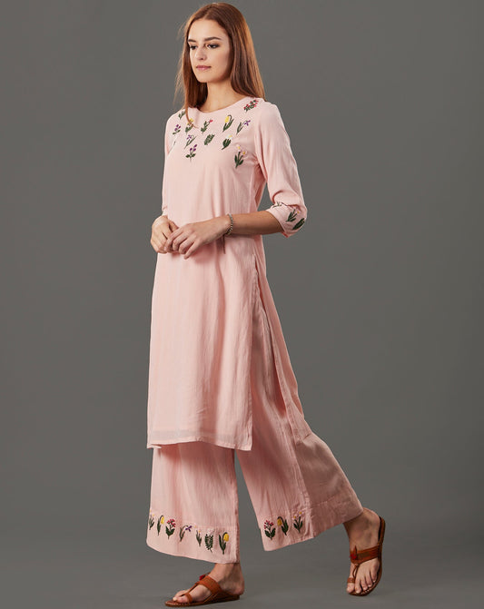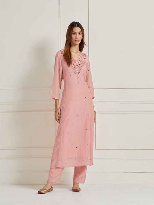 PASTEL PINK EMBROIDERED COTTON SILK KURTA