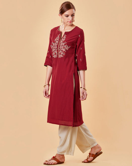 RUST VISCOSE LINE EMBELLISHED KURTA