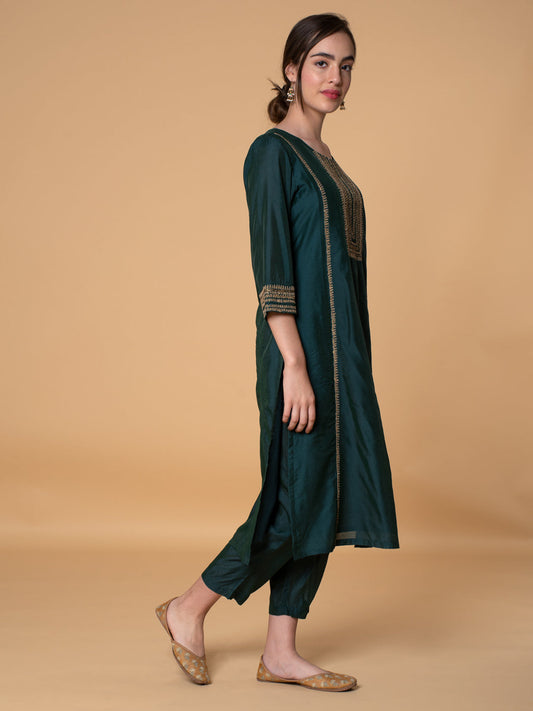 Sold outGREEN EMBROIDERED CHANDERI KURTA