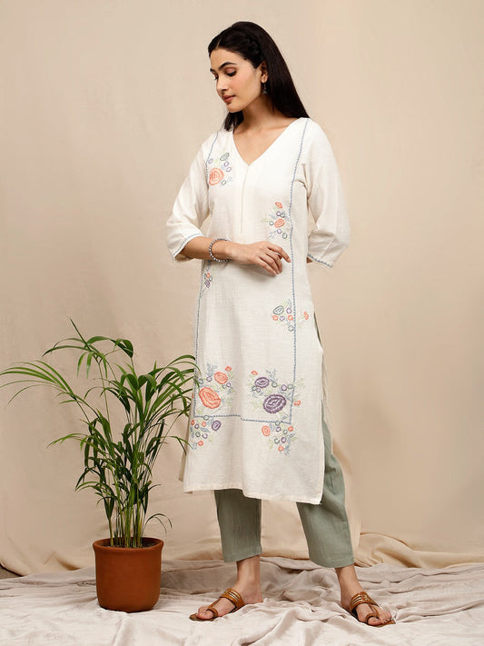 IVORY EMBROIDERED LINEN VISCOSE KURTA