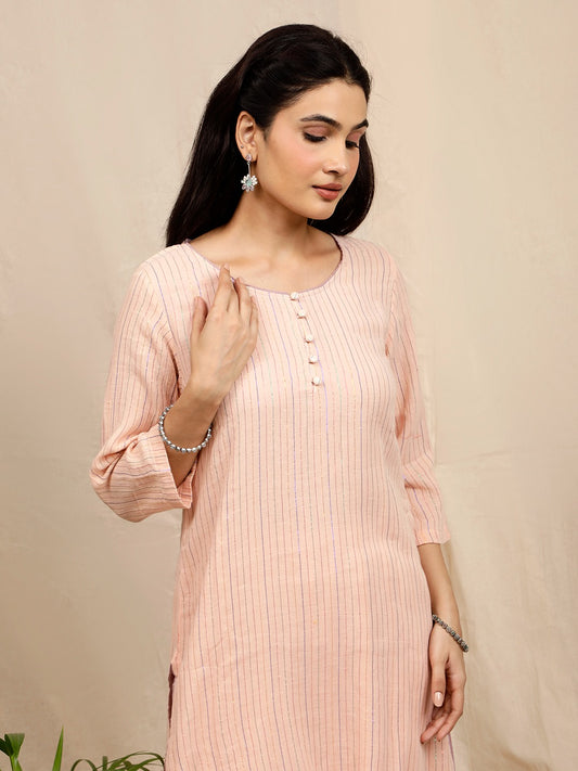 PEACH EMBROIDERED COTTON LINEN KURTA