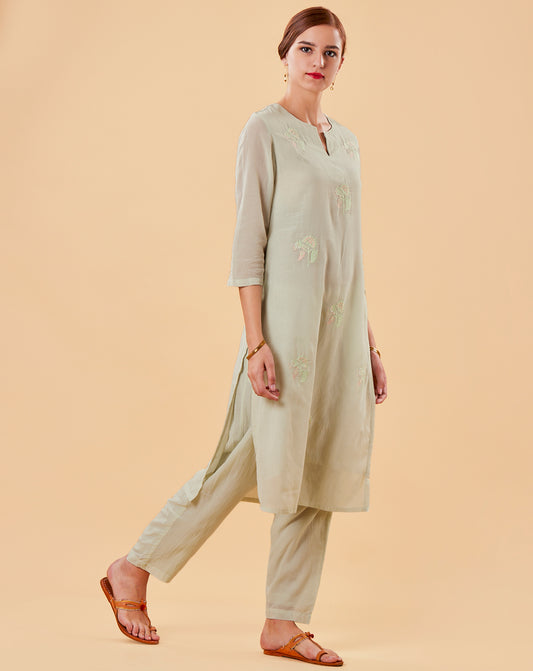 MINT GREEN EMBROIDERED COTTON SILK KURTA WITH PANTS