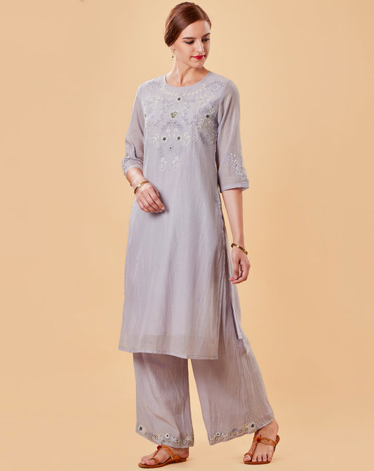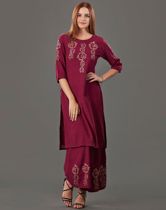MAUVE EMBROIDERED COTTON SILK KURTA
