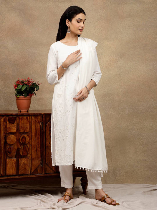 WHITE ALL OVER DORI EMBROIDERED WITH SEQUIN KURTA PANTS WITH DUPATTA