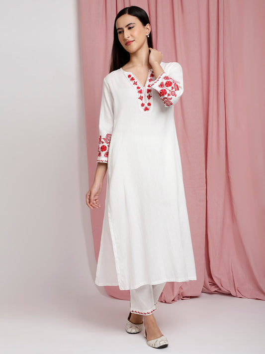 IVORY COTTON LINEN EMBROIDERED KURTA