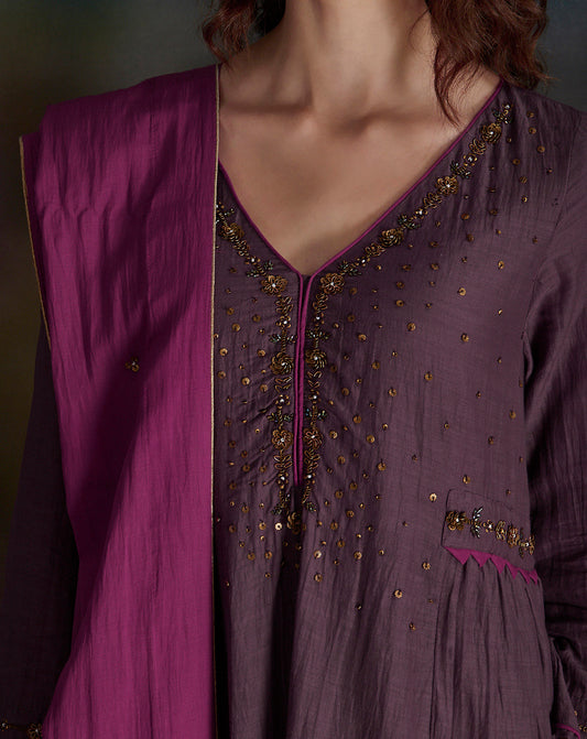 MAROON CUTWORK EMBROIDERED COTTON LINEN KURTA