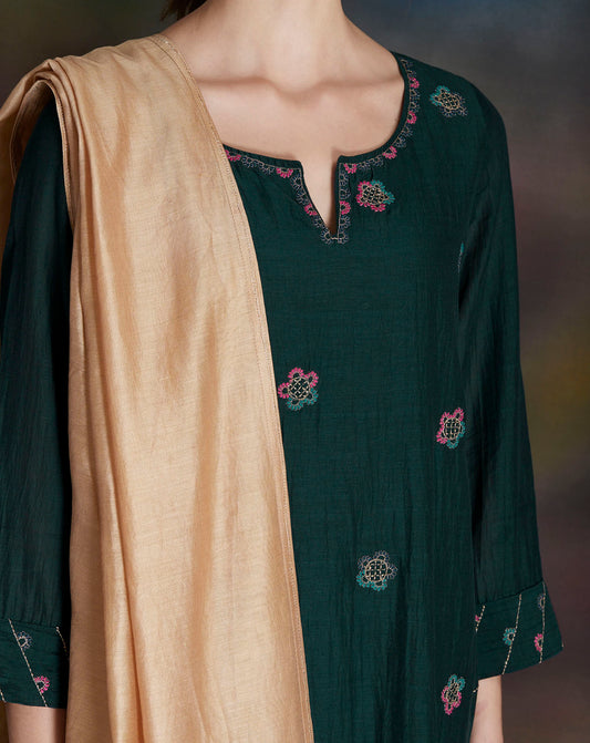 MAROON EMBROIDERED COTTON LINEN KURTA