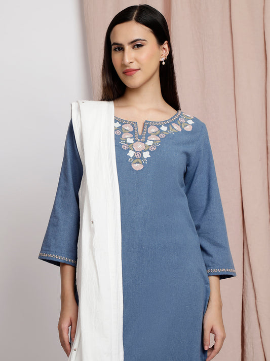 MAROON EMBROIDERED COTTON LINEN DUPATTA