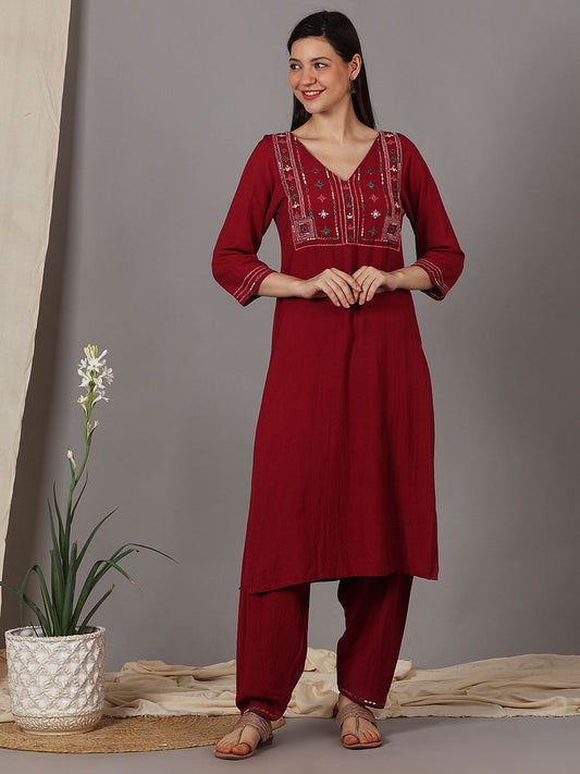 MAROON EMBROIDERED VISCOSE LINEN SALWAAR
