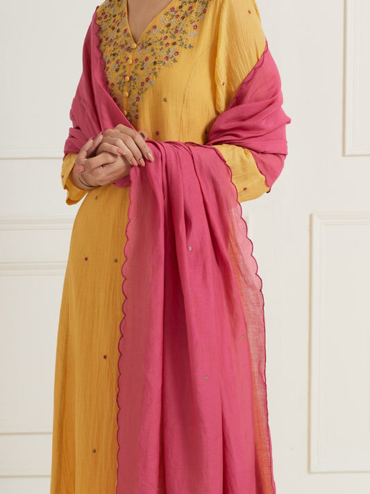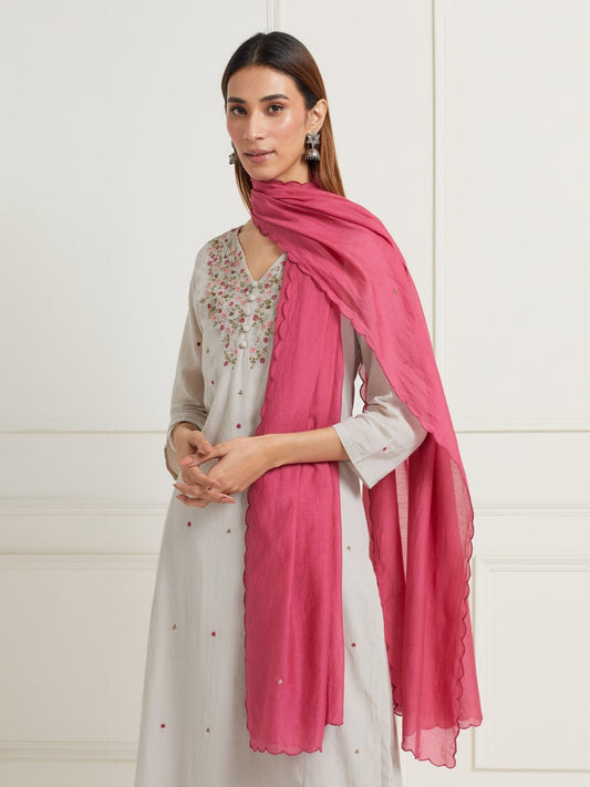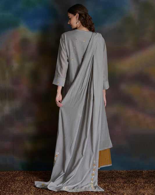 GREY EMBROIDERED COTTON SILK DUPATTA