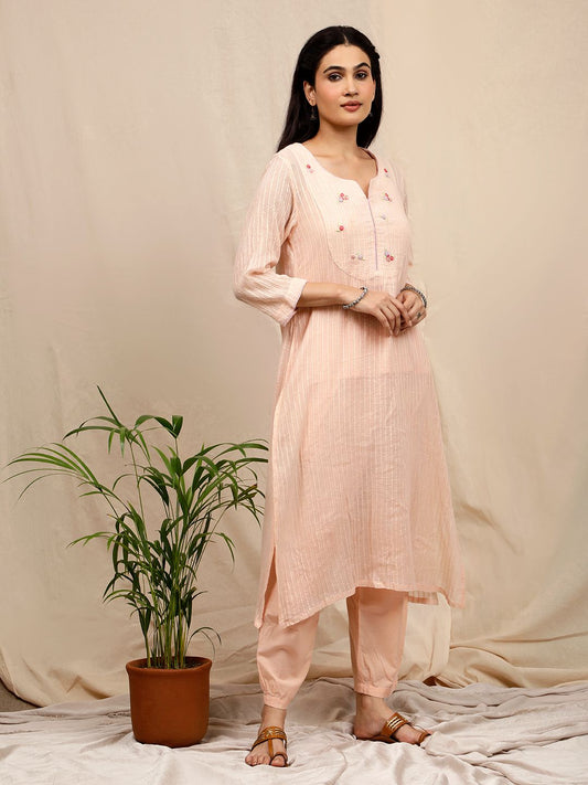 BEIGE CUTWORK EMBROIDERED COTTON LINEN KURTA