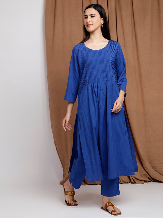 NAVY BLUE EMBROIDERED LINEN VISCOSE PANTS