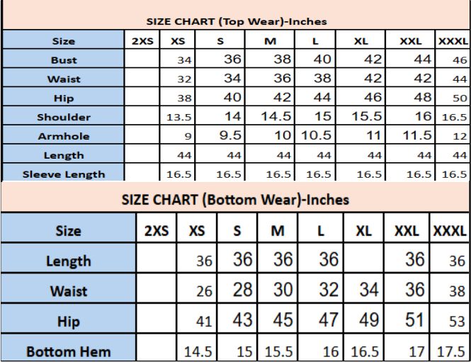 These are Garment measurement in Inches. If you need any customization of Sizes please contact us. Products can be custom made as per requirement as well.