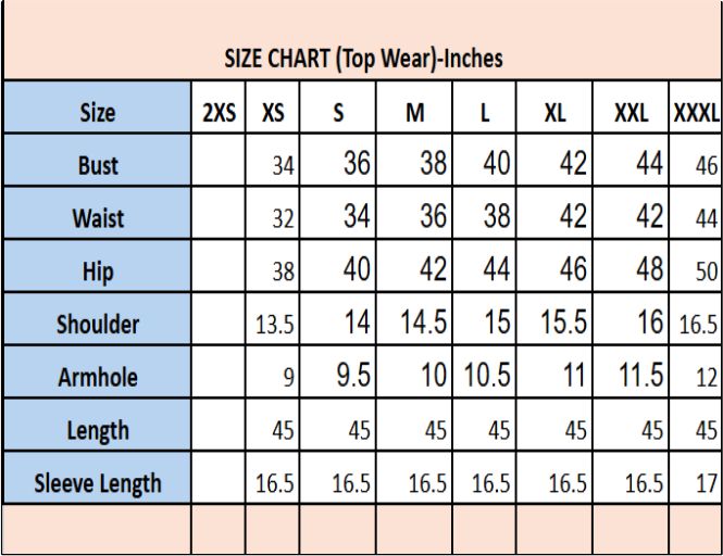 These are Garment measurement in Inches. If you need any customization of Sizes please contact us. Products can be custom made as per requirement as well.