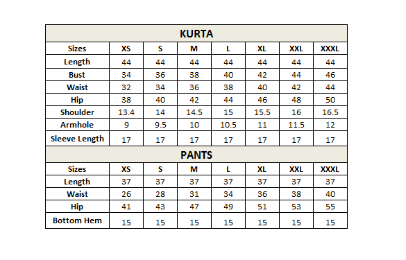 These are Garment measurement in Inches. If you need any customization of Sizes please contact us. Products can be custom made as per requirement as well.