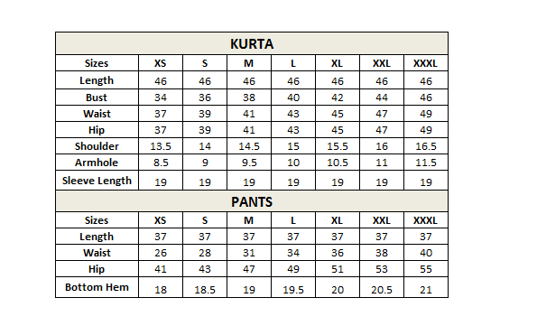 These are Garment measurement in Inches. If you need any customization of Sizes please contact us. Products can be custom made as per requirement as well.
