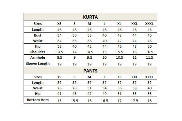 These are Garment measurement in Inches. If you need any customization of Sizes please contact us. Products can be custom made as per requirement as well.