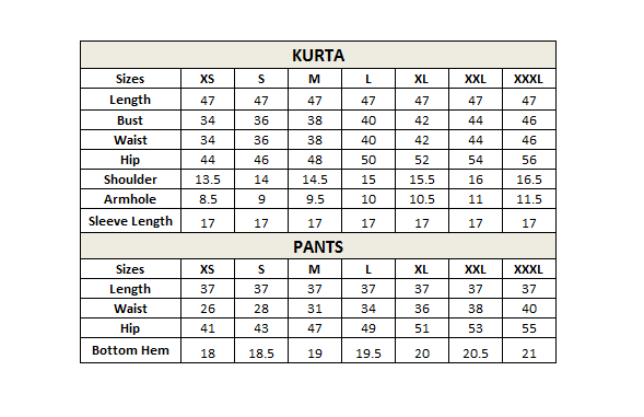 These are Garment measurement in Inches. If you need any customization of Sizes please contact us. Products can be custom made as per requirement as well.