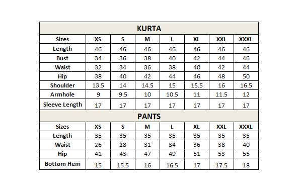These are Garment measurement in Inches. If you need any customization of Sizes please contact us. Products can be custom made as per requirement as well.