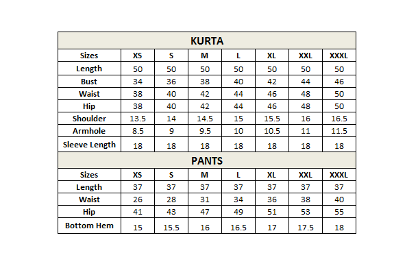 These are Garment measurement in Inches. If you need any customization of Sizes please contact us. Products can be custom made as per requirement as well.