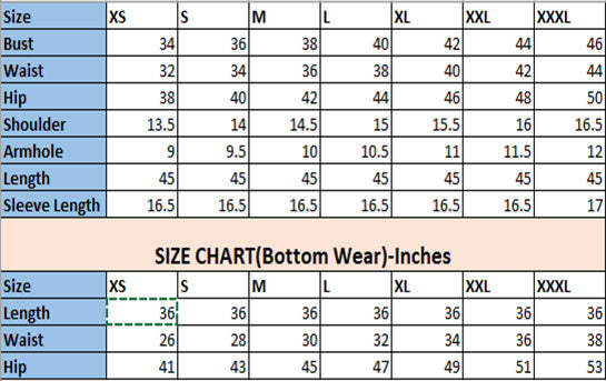 These are Garment measurement in Inches. If you need any customization of Sizes please contact us. Products can be custom made as per requirement as well.
