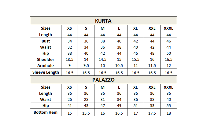 These are Garment measurement in Inches. If you need any customization of Sizes please contact us. Products can be custom made as per requirement as well.